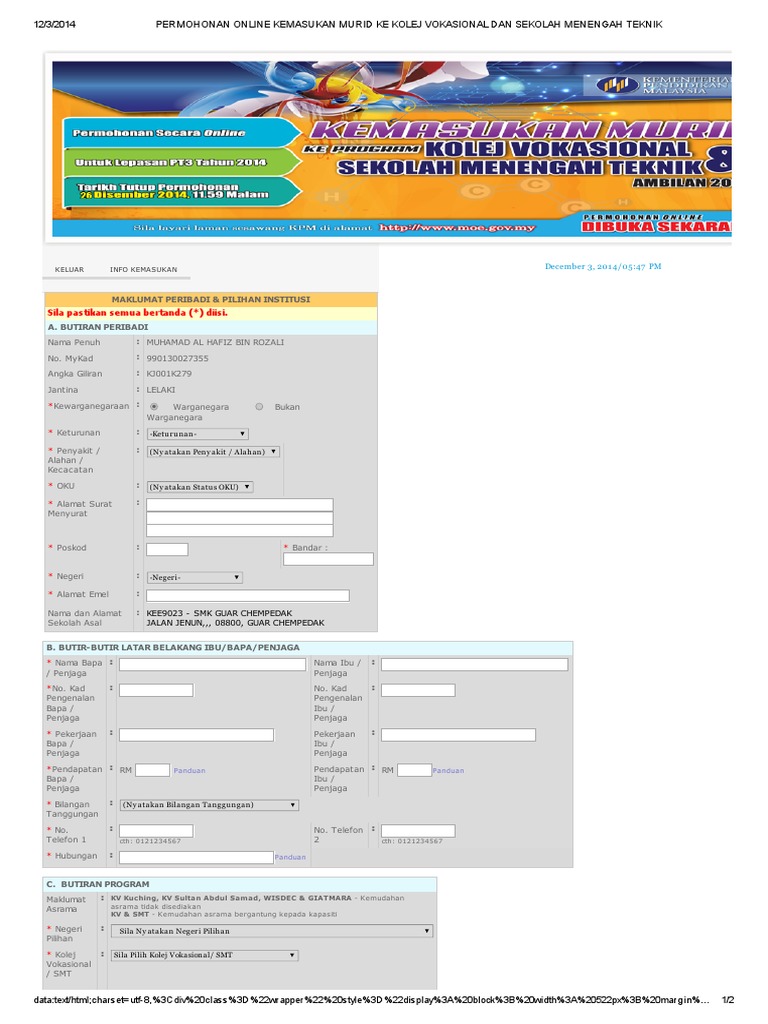 Borang Permohonan Kolej Vokasional Dan Sekolah Teknik 2016 Cerita Budak Sepet
